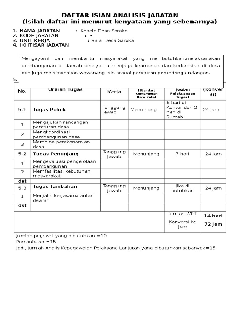 Pelupusan / hapus kira kaedah pelupusan kuantiti lokasi. 6 labelkan nombor siri pendaftaran berserta perkataan hak kerajaan malaysia (hkm) pada aset. Berikut contoh pengisian kegiatan tugas tambahan yang dilakukan guru. Pada kesempatan kali ini kami akan berikan contoh pengisian analisis jabatan (anjab) untuk guru mata pelajaran bahasa indonesia. Format sk ini dalam format word atau doc sehingga para pns tinggal mengisinya.