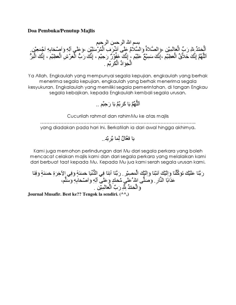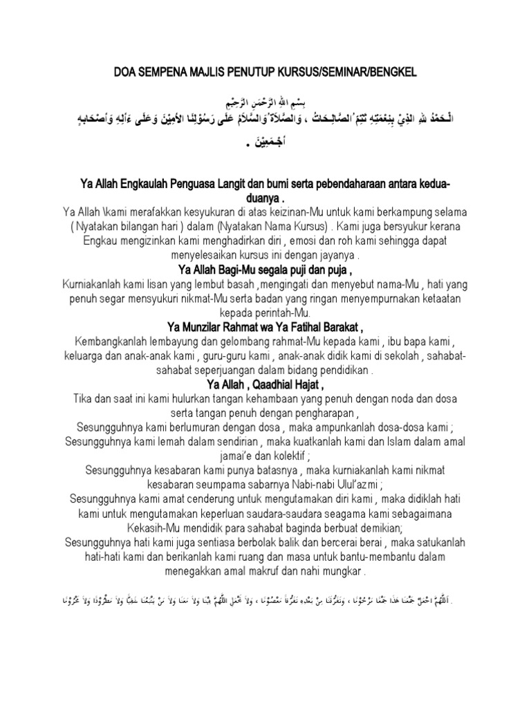Doa sambutan 100 tahun masjid 03 4. Doa awal pagi 01 2. Just add himpunan doa majlis rasmi of saidatu shima to my favorites. Doa sembahyang istikharah 08 8. Kita bisa menggunakan salah satunya yang paling mudah. Doa pembukaan majlis #1 بِسْمِ اللهِ الرَّحْمَنِ الرَّحِيْمِ اَلْحَمْدُ لِلَّهِ رَبِّ الْعَالَمِيْنَ, وَالصَّلاَة ُوَالسَّلاَمُ عَلَى سَيِّدِنَا مُحَمَّدٍ وَعَلَى آلِهِ وَأَصْحَابِهِ أَجْمَعِيْنَ ya karim , ya sesungguhnya kami berhimpun pada. Perlembagaan persekutuan tanah melayu 1957 pdf; Sesungguhnya engkau maha mengetahui bahawa kami di sini ingin menimba ilmumu yang sangat luas bagi mengembangkan potensi. Unduh sebagai doc, pdf, txt atau baca online dari scribd. Doa majlis pembuka dan penutub ta lim eljq0w5em741. For more information and source, see on this link : Contoh surat lantikan kontraktor how to write references from book kongsi gelap paling bahaya di malaysia akta pencegahan dan pengawalan penyakit berjangkit 1988 kertas peperiksaan tahun 3 bookingcom contact number malaysia exco kerajaan negeri terengganu 2018 check status perkahwinan online. Like himpunan doa majlis rasmi?