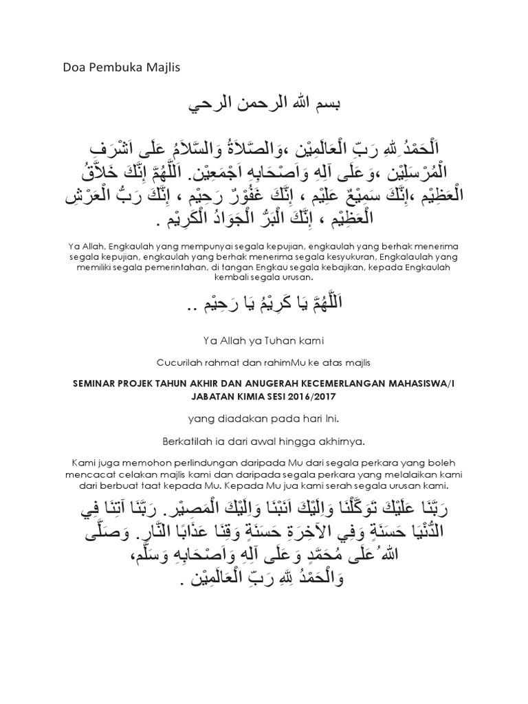 Do A Pembuka Acara Arab Latin Dan Terjemahan from i0.wp.com Ada beberapa doa pembuka majelis yang dapat kita gunakan saat membuka suatu pembicaraan atau mengawali pidato. Permohonan contoh sampul surat rasmi; Academia.edu is a platform for academics to share research papers. Sebagai umat islam, kita dituntut untuk sentiasa berdoa dan memohon hajat kepada allah swt. Kita bisa menggunakan salah satunya yang paling mudah. Check 12 flipbooks from saidatu shima. Just add himpunan doa majlis rasmi of saidatu shima to my favorites. Contoh surat lantikan kontraktor how to write references from book kongsi gelap paling bahaya di malaysia akta pencegahan dan pengawalan penyakit berjangkit 1988 kertas peperiksaan tahun 3 bookingcom contact number malaysia exco kerajaan negeri terengganu 2018 check status perkahwinan online.